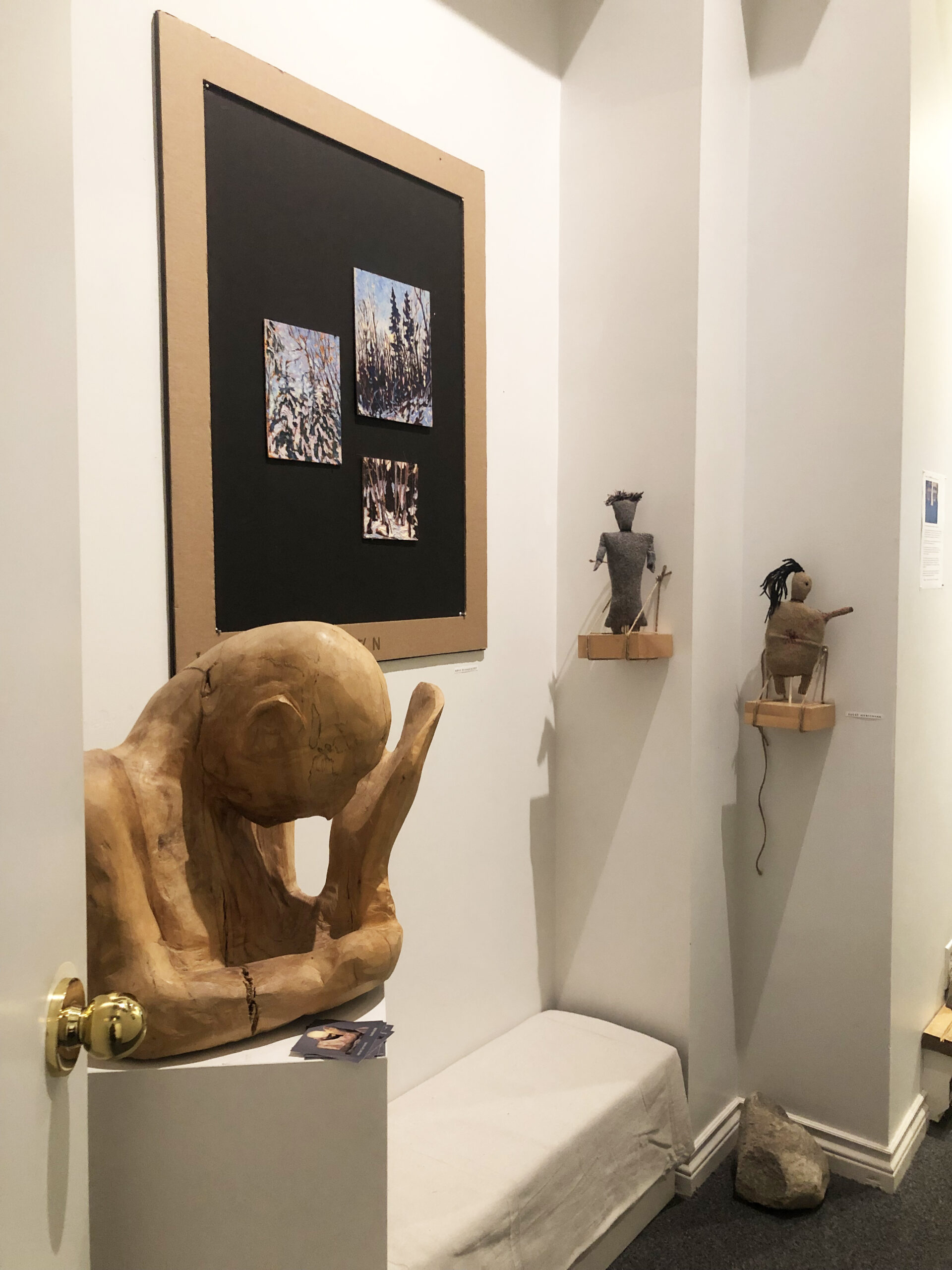 Sculpture by Adrian Symonds, Paintings by Eric McConachie, Felt dolls by Peggy Mersereau