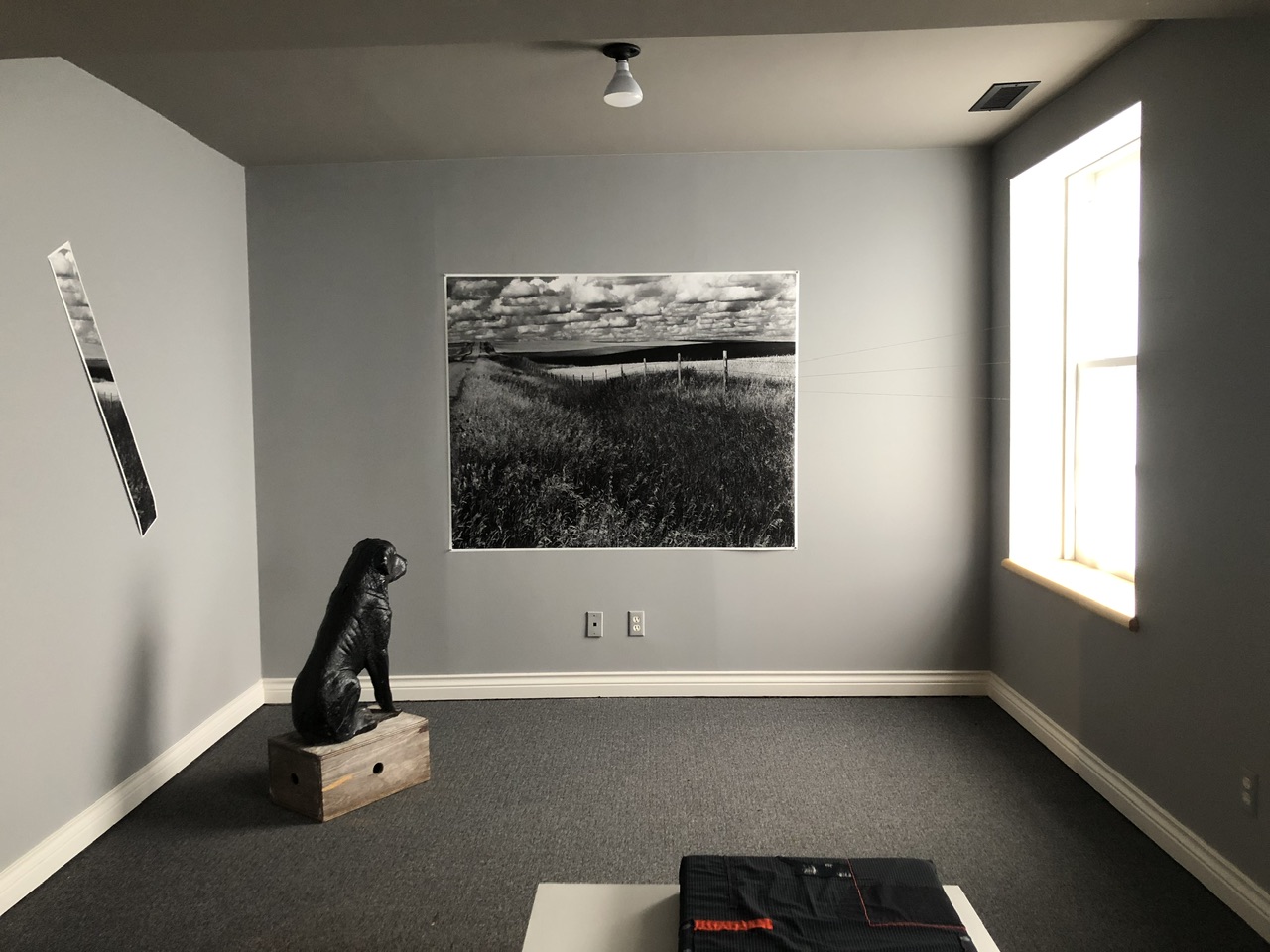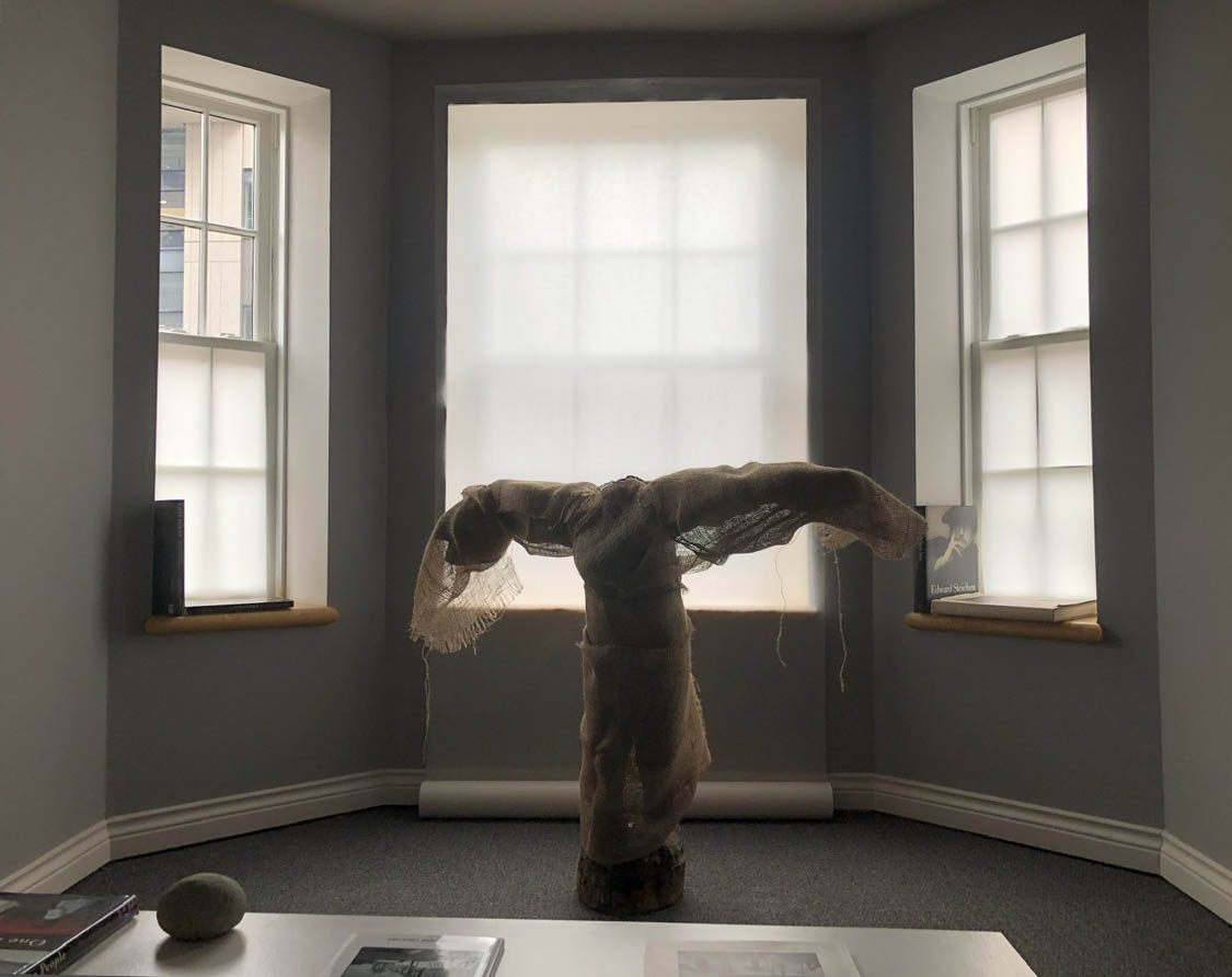 Sculpture by Adrian Symonds wrapped in burlap for this exhibit by d harris